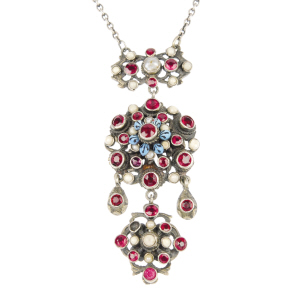 珍珠项链可以戴单串的,也可以戴多串的,要视旗袍的风格而定。年轻的妈咪佩戴单串珠链显得娇俏,上了年纪的母亲则可选择多串珠链凸显雍容华贵的气质。需要注意的是,单串链的珠粒与多串链的珠粒相比要稍大一些才大方。