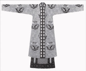 到南北朝时,这种服饰又有了变化,去掉了曳地的飘带,而将尖角的“燕尾”加长,使两者合为一体。