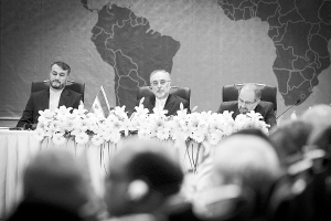 5月29日,伊朗外交部长阿里·阿克巴尔·萨利希(中)出席会议。