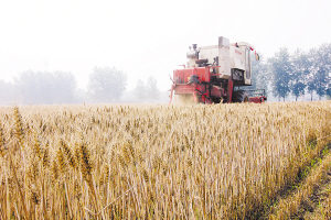 6月2日,一台收割机在周口市东新区搬口办事处李庄行政村的麦田里作业。目前,我市小麦大面积成熟开始收割,机收会战拉开序幕。晚报记者 金月全 摄