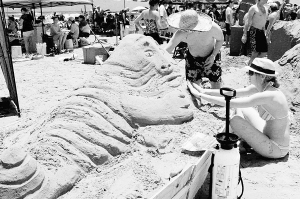 6月1日,在美国得克萨斯州加尔维斯顿,沙雕艺术家在比赛中制作沙雕作品。