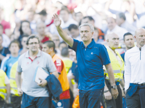看台上,有感谢穆帅的横幅,也有嘲讽穆帅的横幅,欢呼声和嘘声此起彼伏。虽然C罗没有上场,皇马球员依然用4∶2的胜利为穆帅送上一份告别礼。