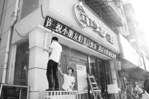 七一路上的沿街门店把一个个大喇叭设置在门前,循环播放着广告,不停歇地轰炸着市民的耳朵。