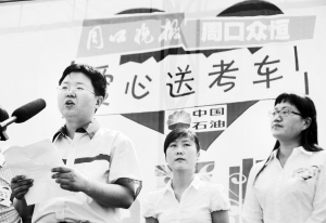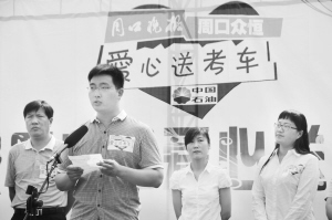 为了更好地完成送考任务,启动仪式现场的爱心车主都细心地询问送考细节。市民田亚杰代表爱心车主发言(如图),他说:“请各位家长放心,送考期间,我们会热情服务每位考生,将他们安全、及时地送至考点。”同时,他还表示:“很感谢周口晚报为我们提供的这次机会,我们将用实际行动回报社会,让雷锋精神永远活在人们心中。”