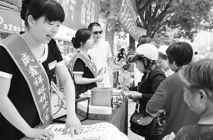 在活动现场,该服务队不仅免费为广大市民提供了有关爱眼、护眼知识的资料,还发放了视力体检表、眼镜盒,并为市民免费清洗眼镜。据了解,6月6日后,盛鑫祥眼镜将会继续在学校、社区等分别开展一系列爱眼公益活动,为广大学生和居民送去健康和光明。 (王静 李红 摄)
