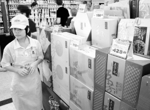 记者在广州一家超市看到,正在售卖的价格最贵的粽子礼盒,内含18枚粽子,价格为428元,折合23.8元一枚。比往年动辄千元以上的豪华礼盒便宜许多(6月2日摄)。