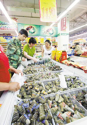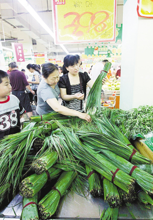 距离端午节还有一周的时间,但各大超市和大街小巷已飘起了粽香。6月6日,在周口市区的各大超市、卖场,多个品牌的粽子已摆上专柜。高档礼盒装粽子的数量明显减少,大众价位的粽子成为主流。不少超市还在柜台的显眼处,专门摆放了粽叶等包粽子用的原料供市民挑选。
