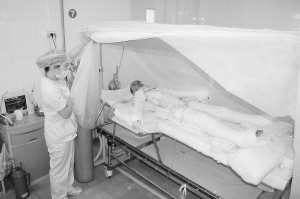 昨日上午,记者在周口市烧伤医院重症监护室看到,王佳慧的全身缠满了纱布(如图),两眼泪汪汪的她躺在病床上,见人就喊“疼”。