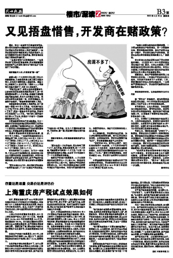 “国五条刚出台不久,等过段时间政策松一些再开盘也好。”广州一位房地产开发商说:“不急在这一时开盘,过几个月调控政策又得变,不信的话,赌一赌,拖延得时间越长卖价越好。”