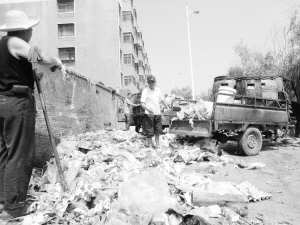 当日上午,记者在市区交通大道和建安路交叉口看到了这个位于西南角的垃圾场。这个垃圾场的面积约150平方米,附近臭气冲天,令人作呕,过往行人无不掩鼻。垃圾场附近有庆丰小区、统计局家属院、粮食局家属院3个生活小区,其中仅庆丰小区就居住着上千户居民。垃圾场斜对面是周口市汽车东站,人流量很大。