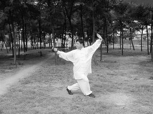 2.用“大鹏展翅”治疗颈椎病。晚上看电视的时候,你可以学一学“大鹏展翅”的动作来保养颈椎:站立位,轻轻弯腰至90度,将手臂向两侧展开,模仿大鹏在展翅飞行,但不可将头抬起来,坚持5分钟。这个动作可以帮助你增加颈椎部肌肉的韧性。