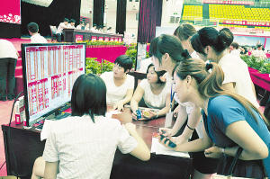 上午8时,开盘选房活动开始。在工作人员的组织下,每组的8名客户在相关人员的引领下依次走进选房区选房,与以往开盘或其他楼盘开盘不同的是,建业的这次开盘首次使用了电脑选房,即客户不再围着房源销控表选房,而是一个客户看一台电脑选房,确定房源后工作人员领回《商品房认购协议书》,然后客户签协议、缴费。“采用电脑选房,多名客户可以同时选房,不但方便了客户,而且提高了开盘活动效率。”建业的销售人员解释。到11时,选房活动基本结束,推出的521套房源在3个小时内售出近400套,整场活动秩序井然。