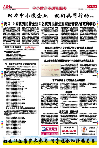 周口2013助推中小企业成长“翔计划”活动正式启动