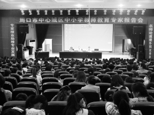 为更快更好地提高中心城区基础教育水平,切实加强中小学教师队伍建设,更新教育观念,全力推进基础课程改革,按照全市“教师队伍建设年”工作部署,6月29、30日市教育局利用暑期有利时机,邀请任民、信金焕、王彩琴、王茞4位教育专家,在周口人民会堂、周口职业技术学院举办“周口市中心城区中小学教师教育专家报告会”,来自市中心城区的2000多名中小学教师聆听了此次报告。(记者 刘华志 摄)
