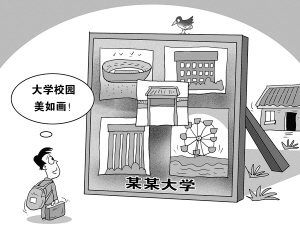 其实,山寨虚假大学不论伪装得多么冠冕堂皇,宣传得如何天花乱坠,演绎得如何完美无瑕,终会露出马脚。纵观那些山寨虚假的大学,要么只是借尸还魂的空壳,只有宣传的网页却无实体的学校;要么学校有图有真相,按图索骥的话,学校确实存在,但玄机是迷惑性很强的校名大有文章。这些山寨虚假学校,往往以优渥的条件,煽动性的承诺让人怦然心动,如果再加上学校老师的宣传,不明就里的家长很可能信以为真、上当受骗。