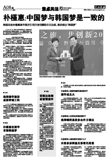 朴槿惠:中国梦与韩国梦是一致的