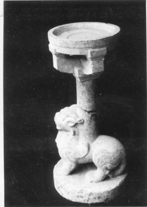 另外,陈王墓出土的石雕多种多样,有扶几、俑、龟座、狮座、辟邪灯等十余种雕工精细,形象逼真,都是不可多见的文物佳品。尤其是圆雕辟邪灯,更是庄重古朴,造型美观、上部为盘,下以十字形斗拱承托,中为圆柱辟邪座。辟邪是古代传说的一种神兽,其貌似狮而有翼,怒目圆睁,张口露齿,头长双角,栩栩如生。