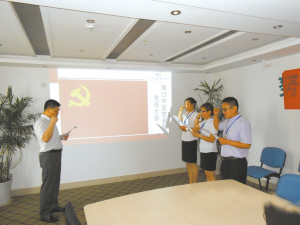 “我志愿加入中国共产党,拥护党的纲领,遵守党的章程……”铿锵的声音穿越漫漫时空,铮铮誓言展示无限忠诚。为迎接中国共产党成立92周年,7月1日下午,英大财险周口中支党支部书记白璟带领公司全体党员在党旗下,坚定地举起右手,庄严宣誓。