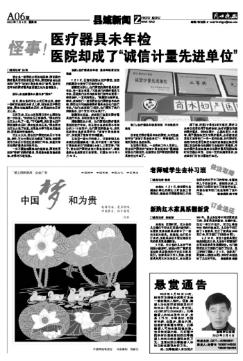 怪事!医疗器具未年检 医院却成了“诚信计量先进单位”