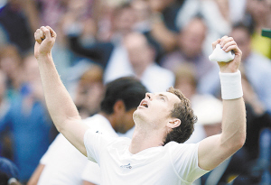本报综合消息 在北京时间昨天凌晨结束的男单1/4决赛中,英国本土选手穆雷上演惊天大逆转,以3∶2击败西班牙选手沃达斯科,艰难挺进四强。在全英国人的期待之下,东道主名将穆雷为自己争取到了冲击温网冠军的机会。英国球员从1936年起就开始陷入与温网冠军绝缘的魔咒,英国人多么希望自己的孩子穆雷能为英国人赢回自信。
