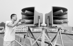 7月7日,河北省唐县人民防空办公室的工作人员对一处扩音设备进行调试。