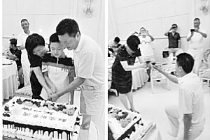 本报综合消息 7月7日,姚笛通过微博曝光一组赵宝刚庆生的照片。