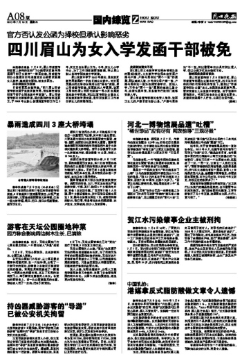 四川眉山为女入学发函干部被免