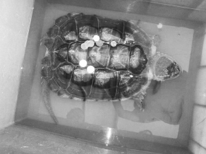 “怪物”的到来,吸引了不少村民到孙广玉家看稀奇。有的用手机拍照留念,有的往它身上撂钱祈福(如图),孙广玉家顿时热闹起来。据悉,经有关人士鉴定,这只“怪物”是鳄龟。“我只想给它找个合适的栖身处。”孙广玉说,“如果是国家保护动物,希望专业人员把它保护起来。”