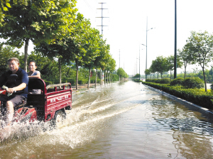 7月11日7时许,家住周口市区周口大道与交通大道交叉口北侧的梁先生一出门,看到家门口的周口大道一夜之间变成了一条“河”。为此,记者联系到周口银龙水务公司。工作人员现场查看后表示,不是自来水管爆裂,而是东干渠水满自溢,积水路面达500多米长。“银龙”已和辖区办事处沟通处理。截至昨日记者发稿时,溢水逐渐减少。晚报记者 徐松 摄