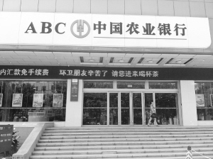 图二:中国农业银行周口分行在大门口显示屏上打出欢迎标语。 晚报记者 郭坤 摄