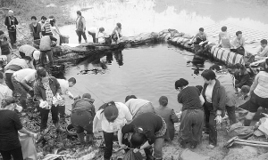“附近上千村民也被雇来帮助清理。在河道上游,河道中沾满原油的水草被割下来,接下来被揽到河滩上,然后被吊装到铺着塑料布的卡车上。”王海清说。