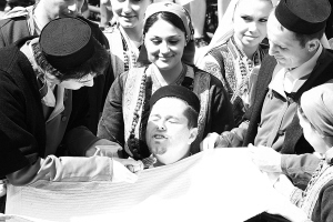 7月14日,在马其顿的嘉里什尼克小镇,27岁的新郎吉奥尔季耶夫斯基和26岁的新娘托特斯卡举行了一场传统婚礼。嘉里什尼克是马其顿西部一个小山村,村民只在夏日回村休假消暑。在每年7月中旬的东正教传统节日“圣彼得日”前后,村中会选中一对夫妇,为他们举办有上百年传统的马其顿“嘉里什卡”婚礼。新华社记者 刘力航 摄
