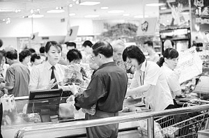 黄河路上一家超市负责人介绍,最近,每天早上一开门,顾客会一下子涌进来购物,到了10时以后,顾客会少许多。尤其在14时至17时,超市里几乎没有顾客光顾,这3个小时超市的销售量接近于零。