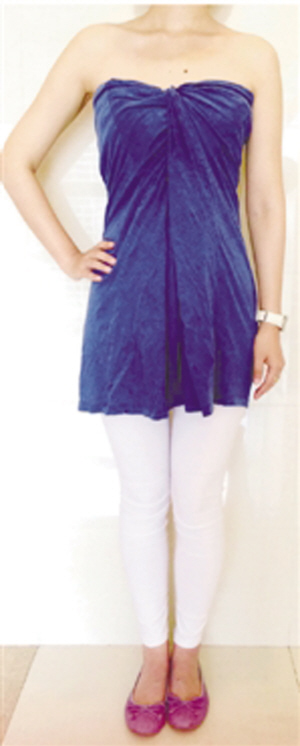 另一只袖子也按上个步骤操作。折叠的时候要记得盖住衣服的图案或LOGO。这样,一件抹胸小礼服就完成啦。