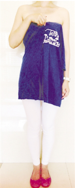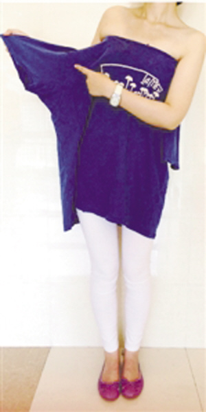 准备材料:一件男式T恤(要够大哦,领口要能塞得下你的上半身)。