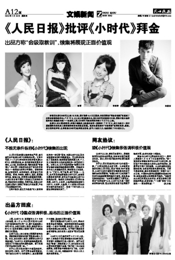 对于《人民日报》对影片价值观的批评,这位负责人表示,发行方面也会吸取教训,“我们会在《小时代2》的宣传上,重点强调影片中积极、励志的正面价值观。”