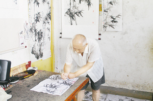 昨日,记者来到刘文德家中,看到刘文德家的客厅里挂满了他画的墨竹,令人感觉仿佛置身竹子的海洋。
