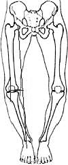 “由于髋关节内旋,使膝关节向内旋转,导致双膝之间难以并拢在一起”。这是O型腿的典型特点。
