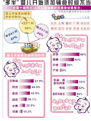 【正确的方法】如果孩子喜欢吃甜食,辅食可以从甜食开始,比如在胡萝卜泥里添加一些奶粉,这样试喂两三天,孩子适应了,就可以多喂一点,只要给小孩不断重复尝试一类新食物,经过10~15次后,宝宝就不会拒绝了。还可以变换辅食的种类花样。
