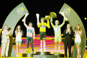新华社巴黎7月21日电(记者尚栩)2013年环法自行车赛21日展开第二十一赛段,也是最后一个赛段的争夺。英国天空车队头号车手弗洛姆荣膺今年个人总成绩冠军。来自荷兰禧玛诺车队(Argos-Shimano)的德国车手基特尔(Marcel Kittel)称雄这一荣誉赛段。