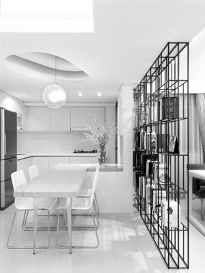 房间采光不好,客厅与书房之间不想用实心墙作隔断时,设计师往往会设计镂空隔断墙或者开放式书架。这样的隔断式书架可以放书,还可以摆放一些照片和小饰品,满足了采光和透气的需要,视觉上也比较美观。但在实际生活中,隔断式书架和其他开放式书柜,都面临着积灰多、不好清扫的问题。如果书柜上的装饰品不经常打理或更换,会因为布满灰尘显得非常陈旧。