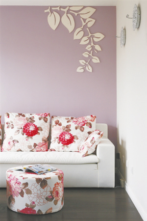 荷花拥有清新脱俗的气质,当紫藕色应用在家居装饰之中,一股清爽风便扑面而来。藕色介乎粉和紫之间,多了一份成熟的韵味。白色的沙发、弯垂的树叶和清新的花朵靠枕都给这个沉稳知性的空间增添了一份跳跃和活泼。