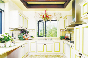 拥有一间完美的厨房,是每个女人对家的梦想。宽敞的空间,淡雅的色彩,令这间厨房透着淡淡的青草香。浅黄色的墙面,加上少量草绿色的点缀给人更柔和的清新美感,整个厨房空间无处不在的花草绿植及细节装饰,都展示出主人高品质的生活情调以及对田园生活的热爱。