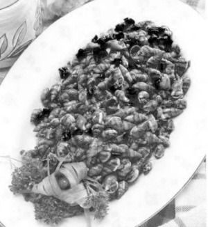 唠嗑间,这里的大厨朱师傅已经将美味烹制好,端上餐桌。粉丝们看到辣炒海瓜子,馋得眼睛都变绿了,拿起筷子,蠢蠢欲动。这道让无数食客心动的美食,外形斑斓,红色的辣椒、绿色的葱段、油亮的海瓜子,相拥成簇,香辣的味道,随之弥漫开来。吃海瓜子,用筷子夹一个,含在嘴里,先吮吸一口它外面的汁液,香咸麻辣之味透过舌头,回味悠长。由于海瓜子个小、油滑,要想夹住,还真不是一件容易的事,每个食客都要经过练手的阶段。汁液被洗干净后,再用小竹签,将海瓜子的嫩肉,从它的壳中挑出来,在口中慢慢地嚼,香劲劲的、麻辣辣的、咸滋滋的,味道很醇厚。