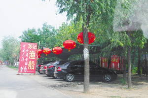 记者在市区沙颍河北岸看到,不足10公里的范围内,依托岸边民房和河中资源,设立的大小饭店有10多家。这些饭店,多数以沿途坡岸绿化带为就餐场所和停车场,不仅破坏了市政府投资的绿地环境,还留下很多垃圾。尤其是几条船改装的饭店,给沙颍河风景造成很大的破坏。