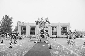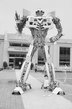 公正睿智的擎天柱、英勇无畏的大黄蜂、残忍狡猾的威震天……变形金刚的经典形象伴随着动画片和3部《变形金刚》电影已经风靡全球,成为中国小朋友最熟悉喜爱的卡通形象。近日,电影中的这些金刚模型来到周口,在天明城售楼中心接受市民观瞻。这些变形金刚模型高达5米,很受小朋友喜欢。