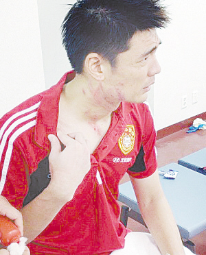 在与韩国队的比赛之中,曾诚不仅表现神勇,多次扑出韩国队有威胁的射门,更是在一次冒险扑救之中被对手蹬踏到脸上、颈部,赛后清晰可见被踩伤的痕迹。比赛结束之后,所有媒体就一致认为,本场比赛的拼搏奖将肯定授予曾诚。