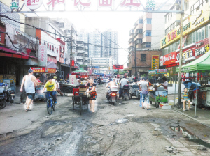 因为这里是商业区,人流量相对较大,许多商贩在这里占道经营。