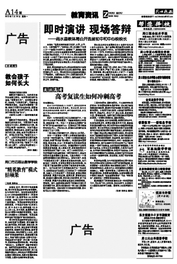 你好!今年的高招工作正在陆续进行中,一些高中毕业生由于种种原因,不能被理想的大学录取,就想复读一年。作为一个复读生在所谓的“高四”学习中应当注意些什么?记者采访了周口锦城学校校长卢山。卢校长认为,复读生在复读时应该注意以下几个方面: