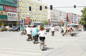 据介绍,前段时间在这个路口发生了两辆电动车相撞的事故。“机动车过路口时有时都得让着行人,反而是电动车开得比较快,结果是两辆骑电动车撞上了。”一个在路口卖小吃的人说。